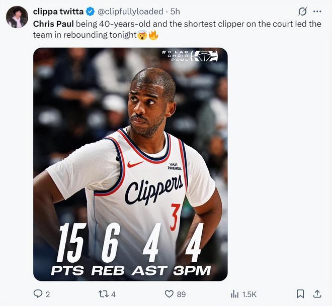 快船媒体:保罗今年已经40岁了,他还是场上最矮小的球员,可他竟然在篮板球方面也能做出积极的贡献。